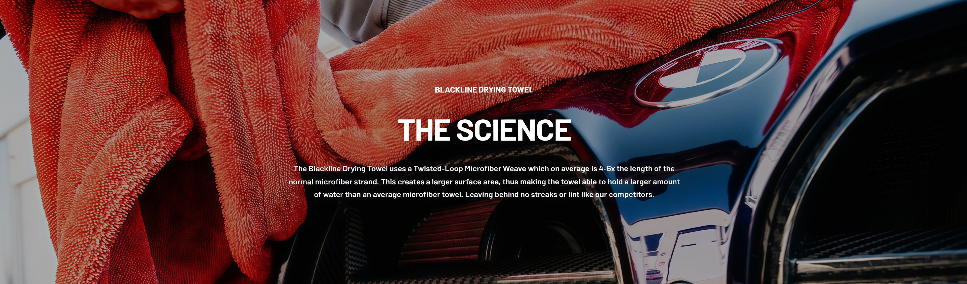 The Blackline®Twisted Loop Drying Towel is woven with Twisted Loop Technology, which increases the surface area of the towel, making it more absorbent than any normal microfiber towel. Allowing you to save time and only have to dry once!